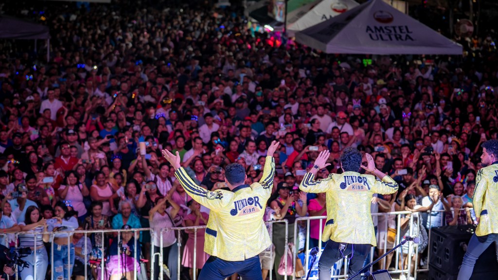 En el parque Quintana Roo, familias y jóvenes gozaron de una noche inolvidable al ritmo de la cumbia del sureste. La agrupación “Junior Klan” puso a bailar a los asistentes con su inigualable estilo, interpretando grandes éxitos como Cinco Minutos, su más reciente sencillo, además de temas icónicos como Coquetona, Solterito, Mentirosa y Las Africanas. El público también disfrutó de la oferta gastronómica y la feria instalada en el lugar, complementando así una velada perfecta.