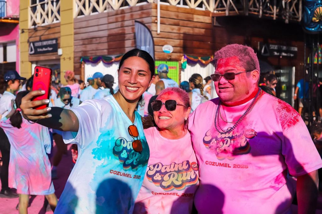 Cozumel, QRoo, 27 Febrero 2025.- El presidente municipal José Luis Chacón y la presidenta honoraria del Sistema DIF Cozumel, Diana Sosa Blanco, encabezaron la carrera “Paint and Run 5k”, la cual se convirtió en la edición con más participantes en un carnaval, teniendo más de 2 mil personas recorriendo el malecón de la isla, el escenario perfecto que reunió a chicos y grandes.