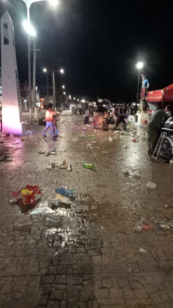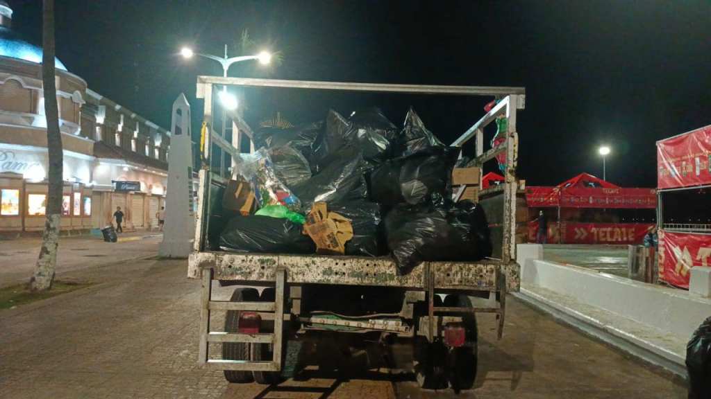en su gran mayoría se trato de plásticos, vasos, y envolturas de golosinas así como una gran cantidad de latas de aluminio de cervezas y refrescos, que fueron recolectados por los trabajadores y llevados hacia el basurero municipal.