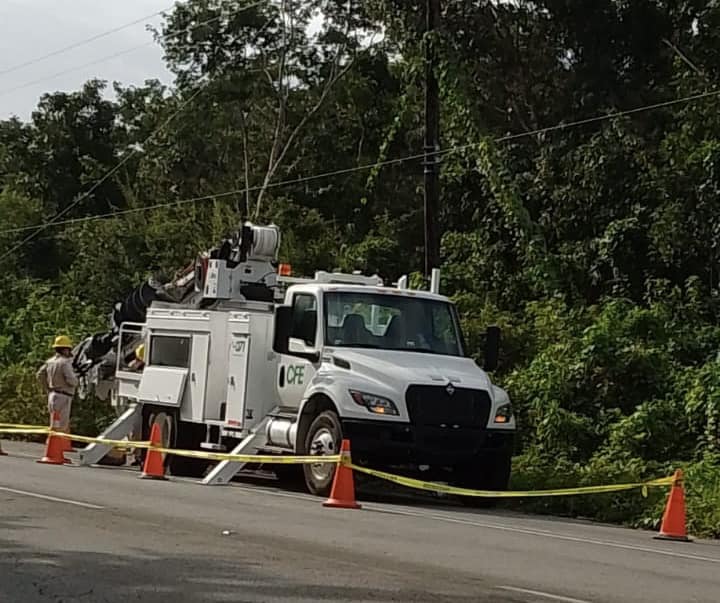 Brigadistas de CFE realizan los trabajos correspondientes para la reparación del problema de falta de energía eléctrica en la carretera transversal y que afecta también a los 5 ejes de la zona de captación de la Comisión de Agua Potable y Alcantarillado sin embargo a más de 48 horas, gran parte de la ciudad se ha quedado sin agua potable en sus hogares.