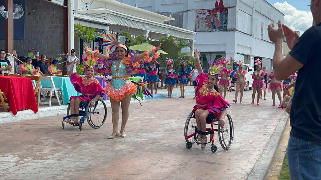 Cozumel, Q Roo, 26 Febrero 2025. Lady Show ejemplo de inclusión en Carnaval de Cozumel. Sin duda, la reina de “Lady Show 2025”, Laura Cárdenas puso el ejemplo de inclusión en el CarnavalCozumel2025 al tener entre su comparsa a 4 jóvenes paratletas en danza en silla de ruedas proveniente de Monterrey, Nuevo León, algunas de ellas de la Universidad autónoma de ese estado y campeonas a nivel nacional e internacional.