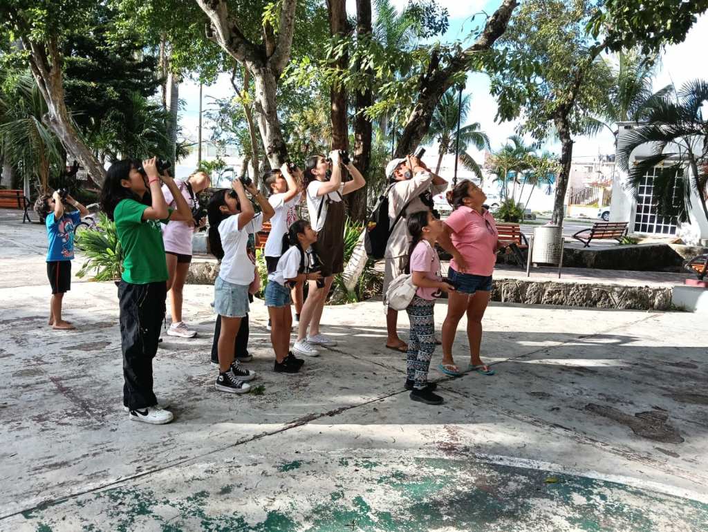 En ésta ocasión en la actividad “Chipes Mangleros de Cozumel”, un grupo de niñas y niños del programa “Sal a Pajarear Yucatán”, realizaron una salida de observación de aves en el parque del Adulto Mayor, en donde pudieron conocer más acerca de las especies migratorias de aves que visitan la isla de Cozumel.