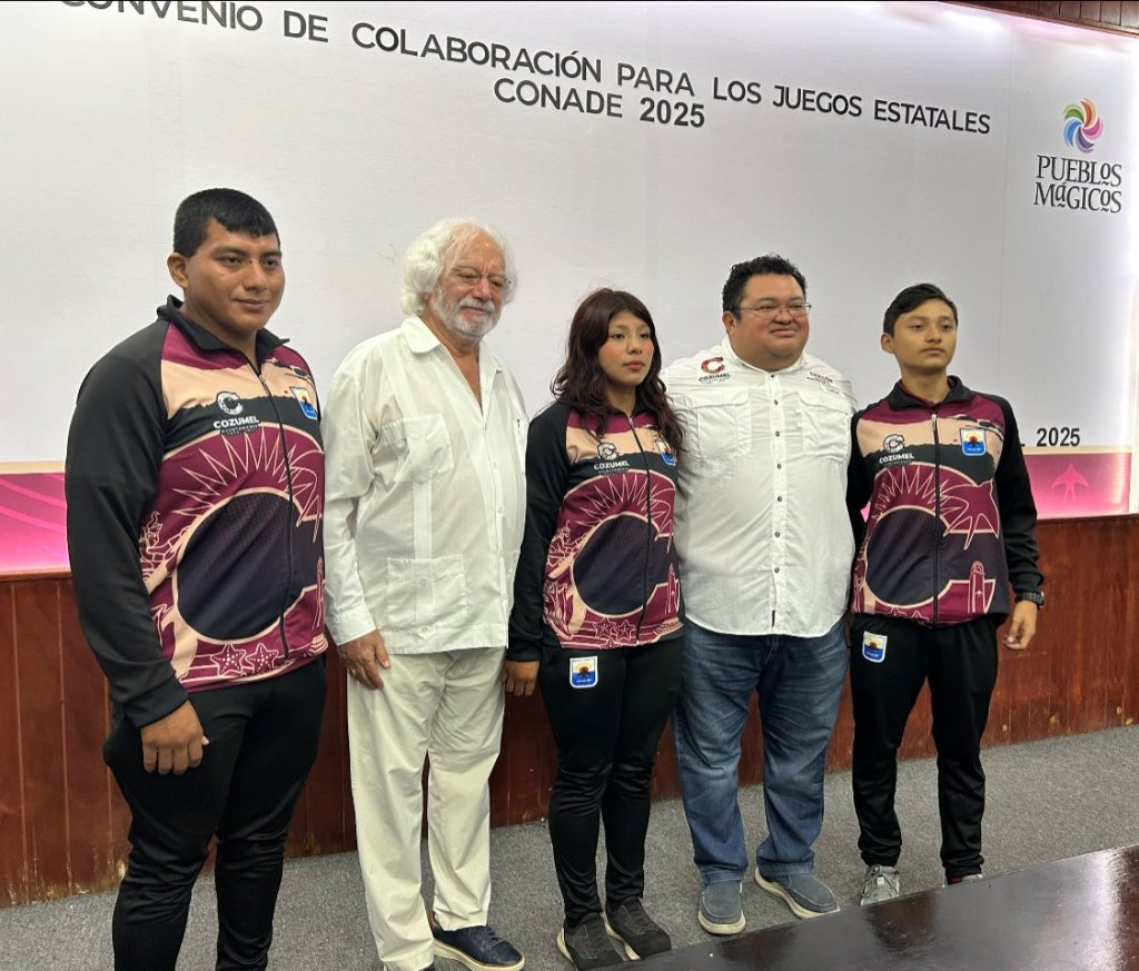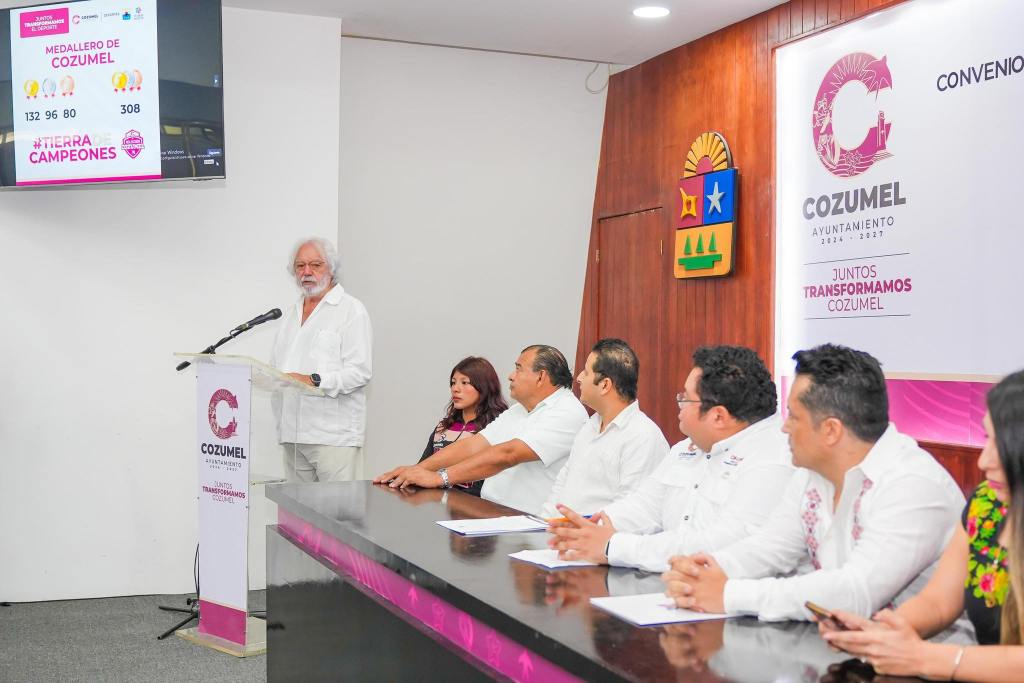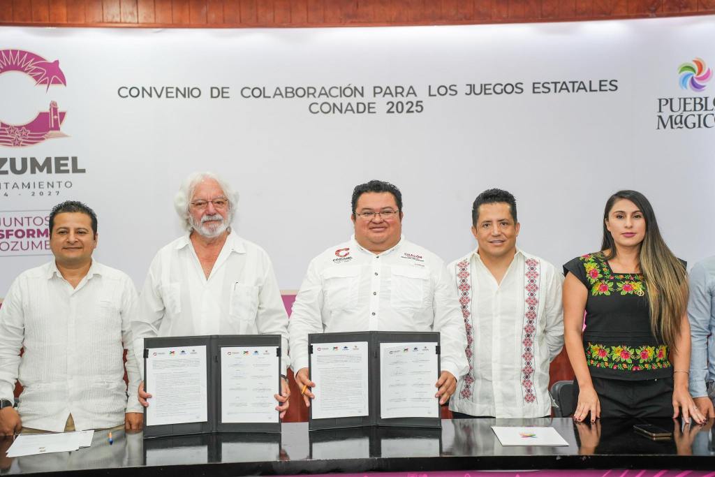 Cozumel, 01 de abril del 2025. – El presidente municipal, José Luis Chacón Méndez junto con el vicepresidente del Grupo Xcaret, Carlos Constandse Madrazo, firmaron el Convenio de colaboración para los Juegos Estatales CONADE 2025, que permitirá a los jovenes deportistas cozumeleños acudir a su encuentro en la etapa nacional para representar a Quintana Roo.