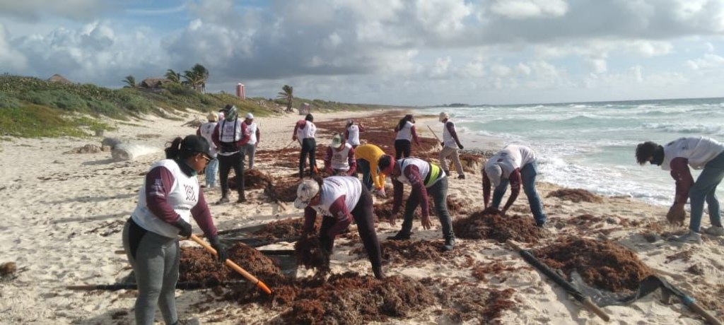 En este esfuerzo, participan 51 personas adscritas a la Zofemat y personal del Programa Empleo Temporal, trabajando en conjunto para mitigar el impacto de este fenómeno natural de lunes a sábado en horario de 7:00 a 14:00 horas, realizando la recolección manual de sargazo para evitar el uso de maquinaria pesada y así proteger el entorno costero de la isla.