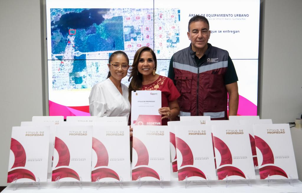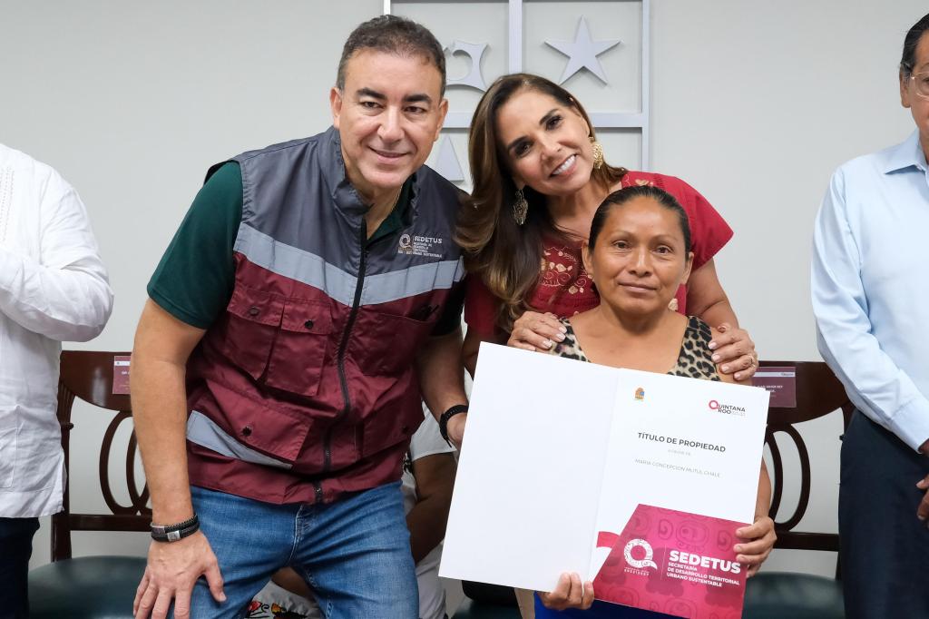 Acompañada por el secretario de Desarrollo Territorial Urbano Sustentable (SEDETUS), José Alberto Alonso Ovando, y la presidenta municipal de Othón P. Blanco, Yensunni Martínez Hernández, la gobernadora destacó que cuando una familia espera por largos años para recibir su título de propiedad “no estamos hablando de trámites, estamos hablando de verdadera justicia social, de los derechos del pueblo”.