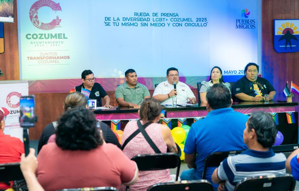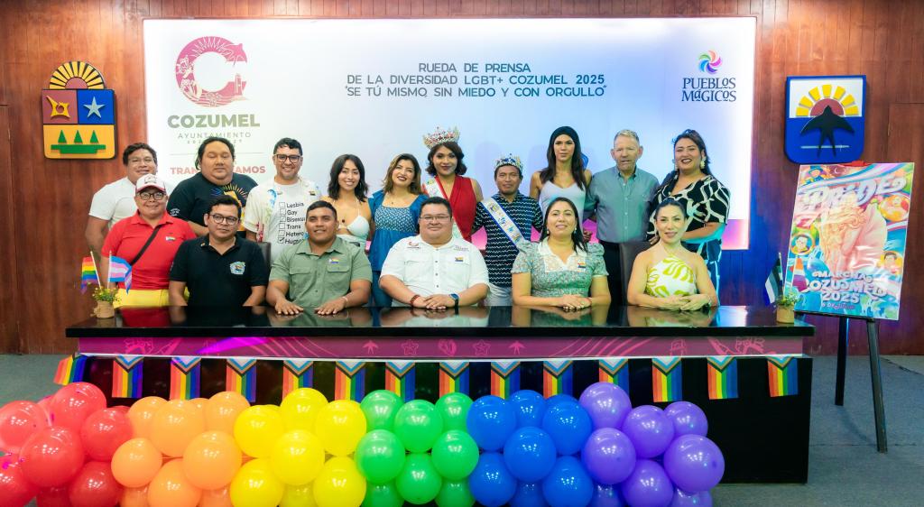 Cozumel, a 30 de mayo de 2025.- Bajo el lema “Sé tú mismo, sin miedo y con orgullo”, esta mañana se llevó a cabo la rueda de prensa de la Diversidad LGBT+ Cozumel 2025, en donde se presentó el póster oficial y la agenda de actividades que vestirán de colores el mes del orgullo en Cozumel.