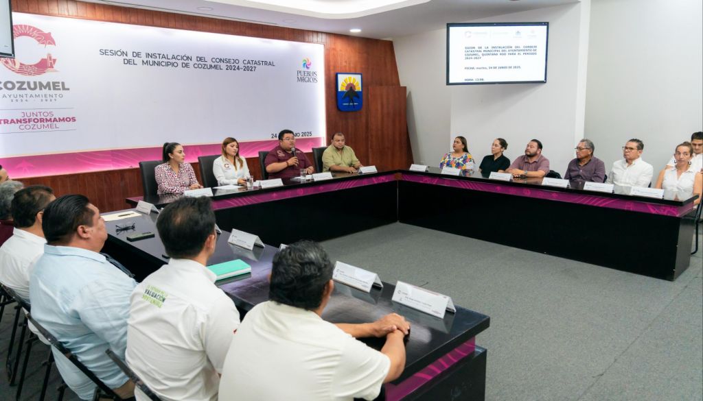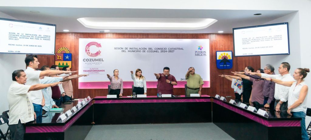Cozumel, 24 de junio de 2025.– Con el objetivo de fortalecer los procesos técnicos, administrativos y de justicia tributaria en el municipio, este martes el presidente municipal, José Luis Chacón Méndez, encabezó la instalación y toma de protesta del Consejo Catastral Municipal de Cozumel 2024-2027, en una ceremonia realizada en el salón Municipios de Q. Roo en el Palacio Municipal.