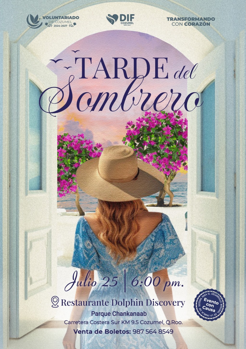 Cozumel, Quintana Roo, 4 de julio de 2025.- Con el objetivo de fortalecer la educación que se brinda en los Centros de Desarrollo Infantil (CENDI) de Cozumel, el Gobierno Municipal que encabeza José Luis Chacón, a través del Sistema DIF Cozumel que preside Diana Sosa Blanco, en colaboración con las Damas Voluntarias, invita a la ciudadanía en general a participar en el evento con causa Tarde del Sombrero.