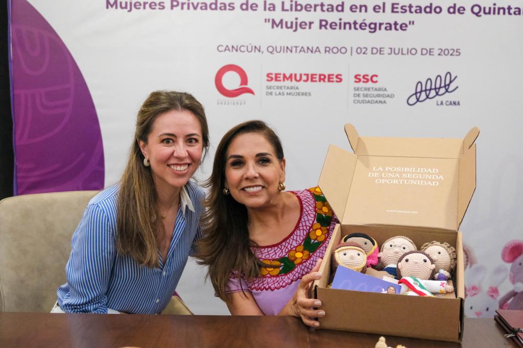 Acompañada de la presidenta honoraria del Sistema DIF Quintana Roo, Verónica Lezama Espinosa, la titular del Ejecutivo atestiguó esta firma entre SEMUJERES, la Secretaría de Seguridad Ciudadana a través del Centro Penitenciario, la asociación civil “LA CANA” representada por Georgina Gómez Izquierdo.