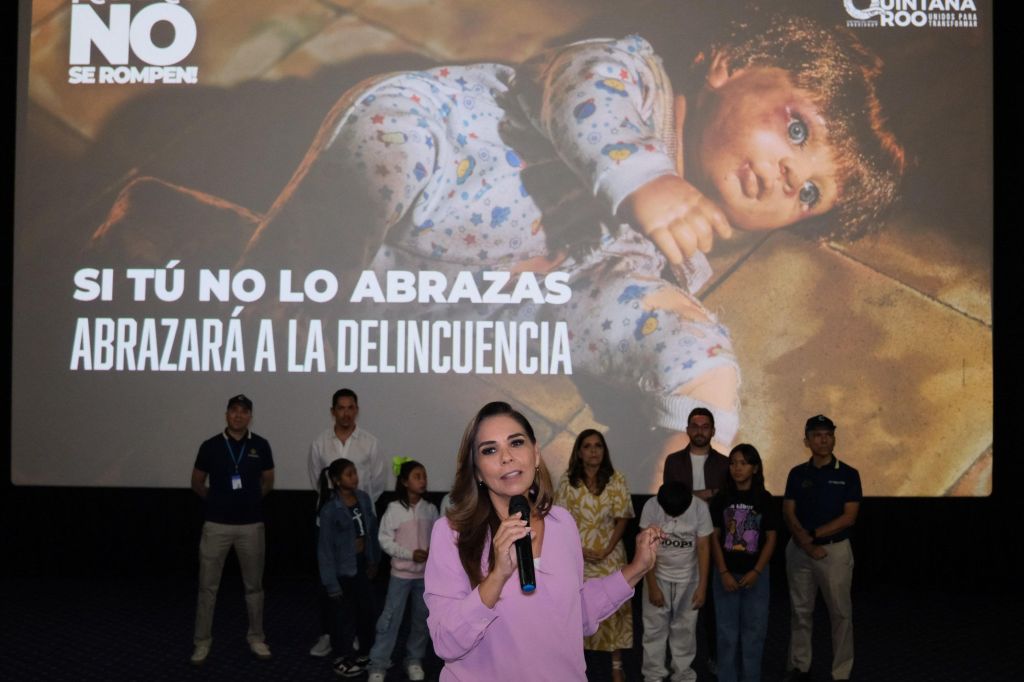 Cancún Quintana Roo a 17 de Julio de 2025.- La gobernadora Mara Lezama Espinosa en alianza con la cadena Cinépolis lanzó la campaña de concientización “L@s niñ@s no se rompen”, con el objetivo de visibilizar. Y fortalecer la prevención de delitos en la infancia, crear una mayor sensibilización de la sociedad y promover espacios seguros para la niñez.