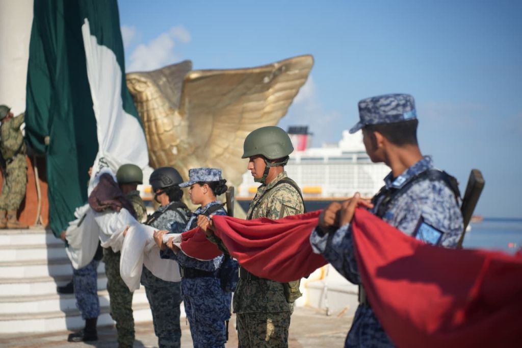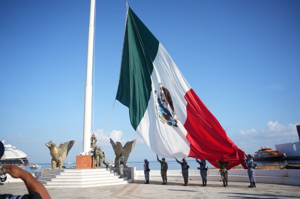 Cozumel, a 4 de agosto de 2025.- Como parte del compromiso con la patria, el gobierno municipal que preside José Luis Chacón Méndez, llevó a cabo el Izamiento de Bandera correspondiente al mes de agosto en la explanada de la bandera.