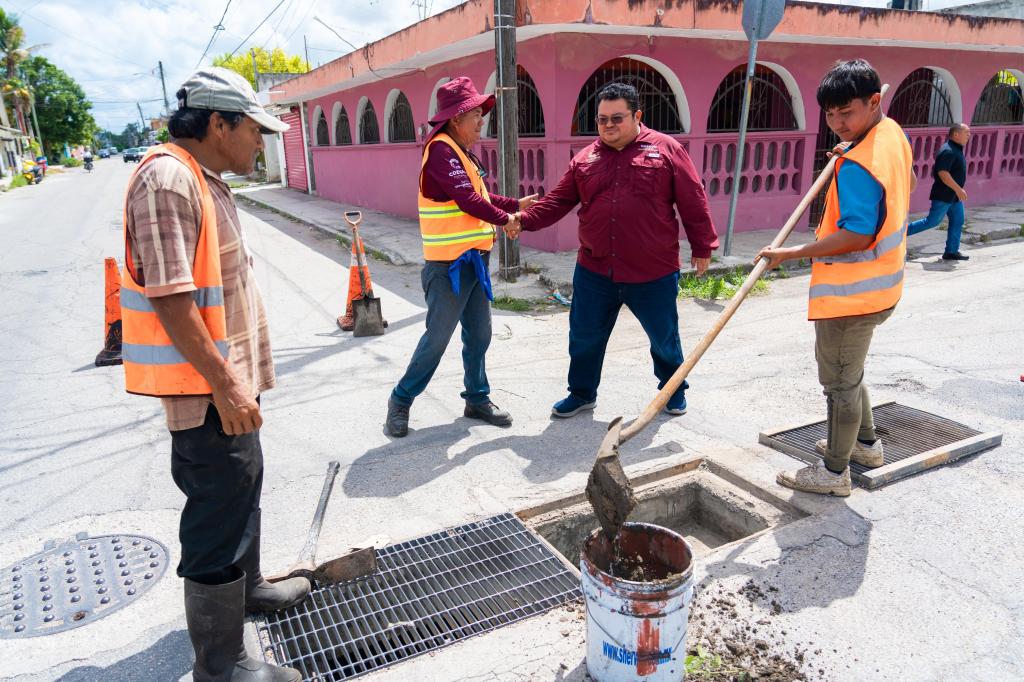 “Seguimos con las labores de limpieza de rejillas en la colonia San Miguel 2, en la 40 con 31, donde ya se desasolvó un pozo de absorción. Durante este trabajo se retira basura, lodo y plásticos, por lo que es fundamental que la ciudadanía mantenga limpia la entrada de sus hogares, ya que así los pozos de absorción permanecen en buen estado.”, puntualizó el presidente municipal, José Luis Chacón Méndez.