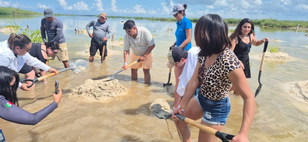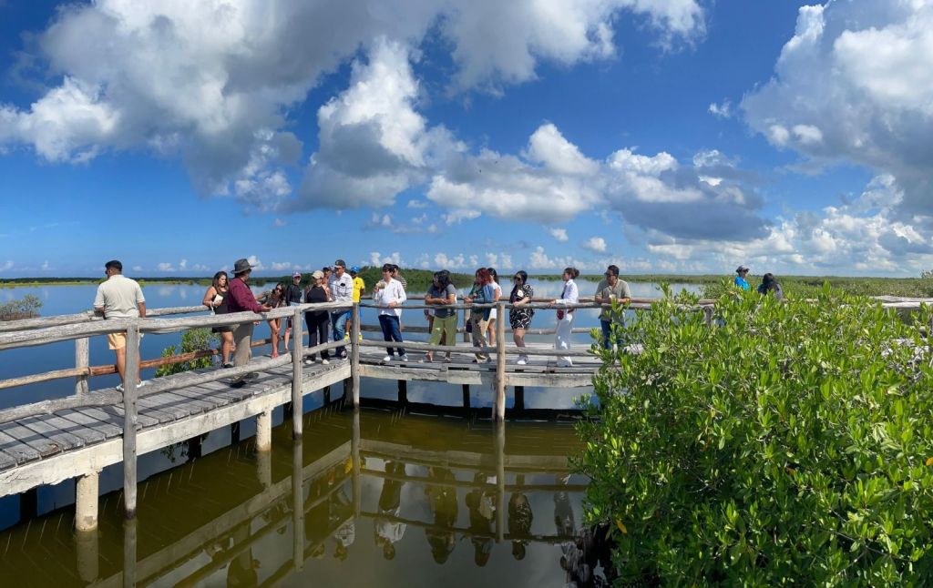 Como parte de la experiencia, las y los visitantes también participaron en actividades de restauración del ecosistema de manglar, colaborando en el mantenimiento de canales de flujo hidrológico, la construcción de terrazas de dispersión y la inserción de vegetación pionera en la parcela educativa de la laguna X’tacún.