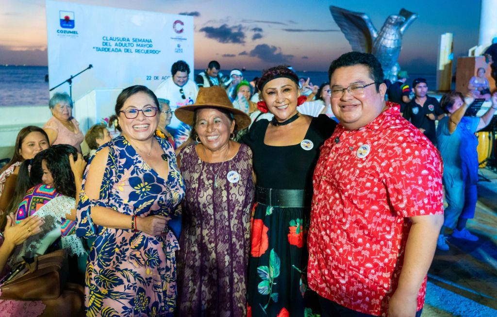 Cozumel, 23 de agosto de 2025. – El Presidente Municipal de Cozumel, José Luis Chacón Méndez, junto con su esposa la presidenta honoraria del Sistema DIF Cozumel, Diana Sosa Blanco, encabezaron la clausura de la Semana del Adulto Mayor con la tradicional «Tardeada del Recuerdo”, realizada en la Explanada de la Bandera, como parte de las actividades por el Día Nacional del Adulto Mayor.