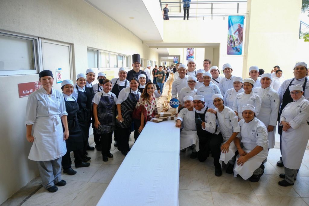La gobernadora Mara Lezama celebró este hecho: “hoy es un gran día porque vamos a romper el récord Guinness con la torta de cochinita más larga, son 300 metros, ellas y ellos son 150 estudiantes con el chef Guillermo Álvarez” afirmó.
