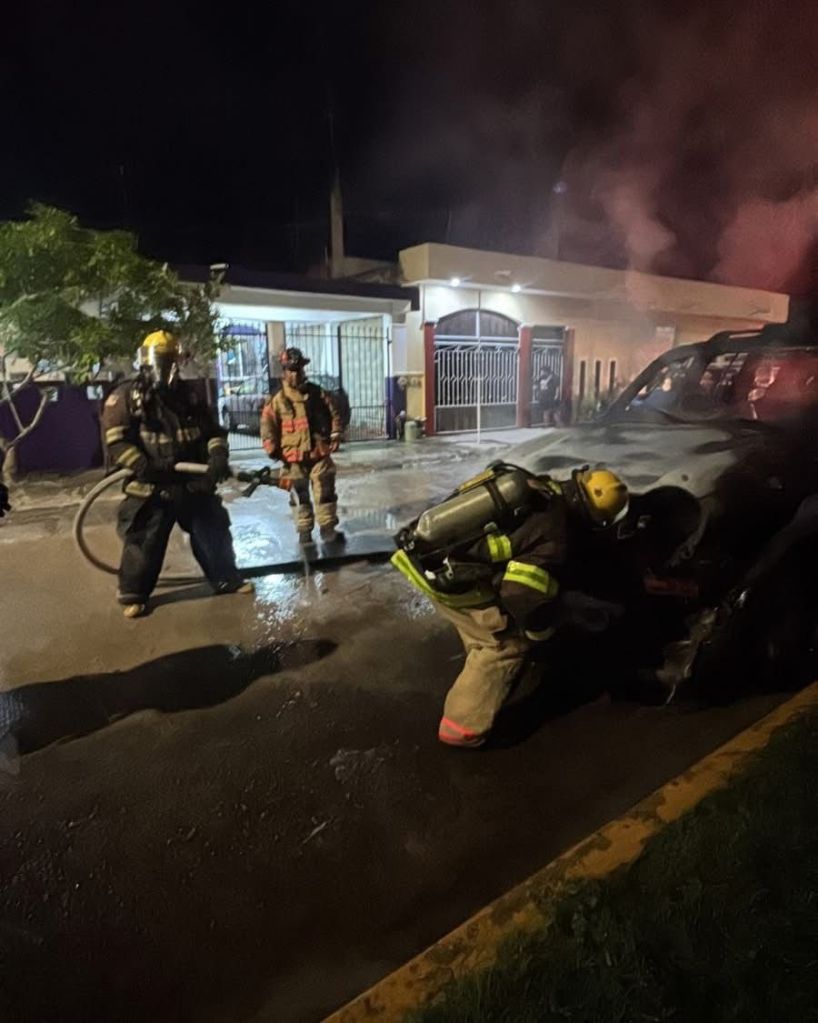 Alrededor de las 19:45 hrs, se reportó un vehículo incendiado en la zona urbana. Al llegar al lugar, el automóvil ya presentaba daños en gran parte de su estructura.