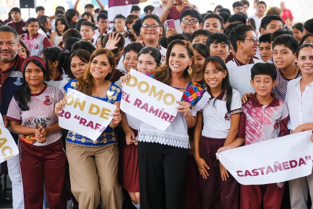 Cancún.- La gobernadora Mara Lezama Espinosa inauguró el nuevo domo construido en la Escuela Secundaria Técnica No. 20 “Rafael Ramírez Castañeda” de Cancún, que cumplió 30 años de servicio este 22 de septiembre, para el bienestar de 950 alumnas y alumnos de los turnos matutino y vespertino.