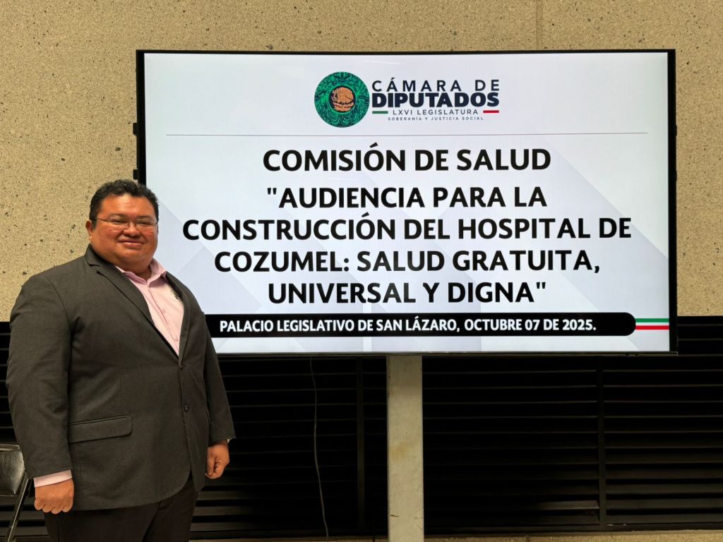 Ciudad de México, a 7 de octubre de 2025.- En un esfuerzo por garantizar atención médica digna y oportuna para las y los cozumeleños, el presidente municipal José Luis Chacón Méndez acudió a la Cámara de Diputados para participar en la audiencia “La Construcción del Hospital de Cozumel: Salud gratuita, universal y digna”, convocada por la Comisión de Salud, con el objetivo de exponer la urgencia de ampliar la cobertura hospitalaria en la isla.
