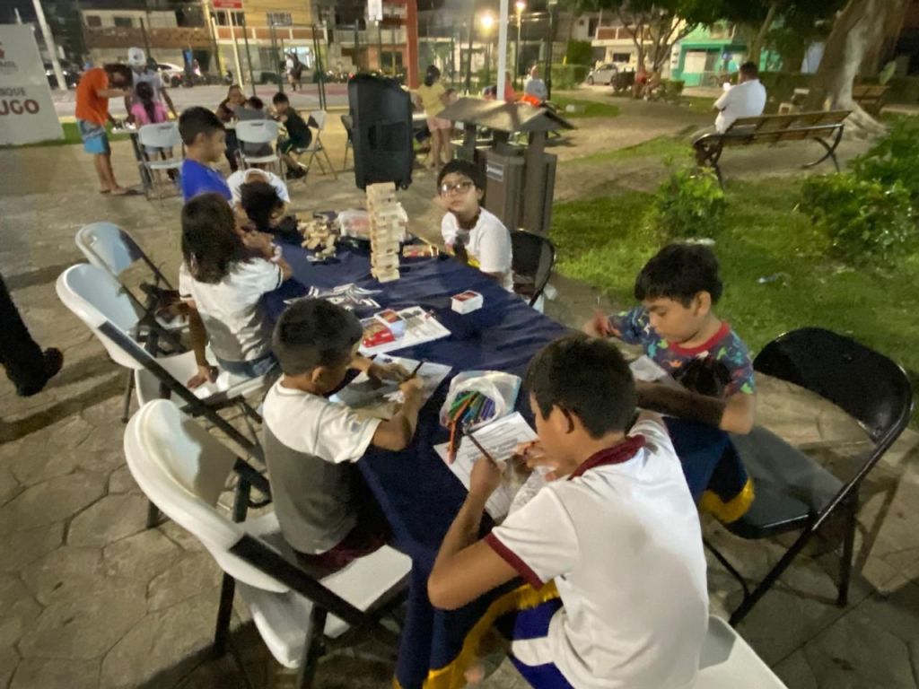 Con el objetivo de fortalecer la prevención del delito y fomentar la participación ciudadana mediante actividades lúdicas y educativas, la Dirección de Seguridad Pública y Tránsito, a través del área de Prevención del Delito y Participación Ciudadana, participó en el evento “Noche de Luna en el Parque Lugo”, de la colonia colonia San Miguel II.