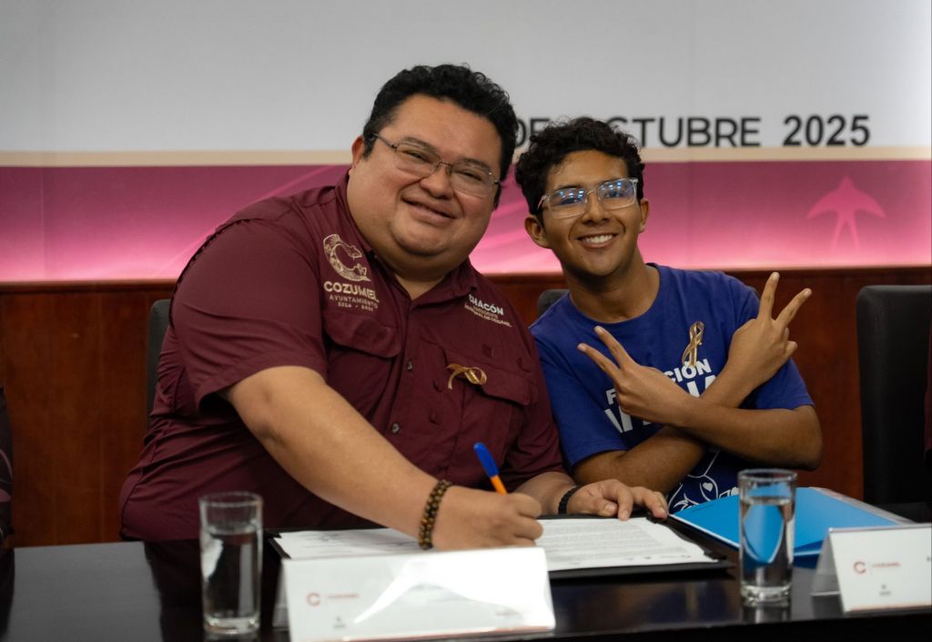Cozumel, 28 de octubre de 2025. – Con el propósito de brindar apoyo a niñas y niños con cáncer, así como generar conciencia sobre la importancia de visibilizar esta enfermedad en la infancia, el presidente municipal, José Luis Chacón Méndez firmó un convenio de colaboración con la Fundación Aitana, dentro de la campaña “Alas de Esperanza”.