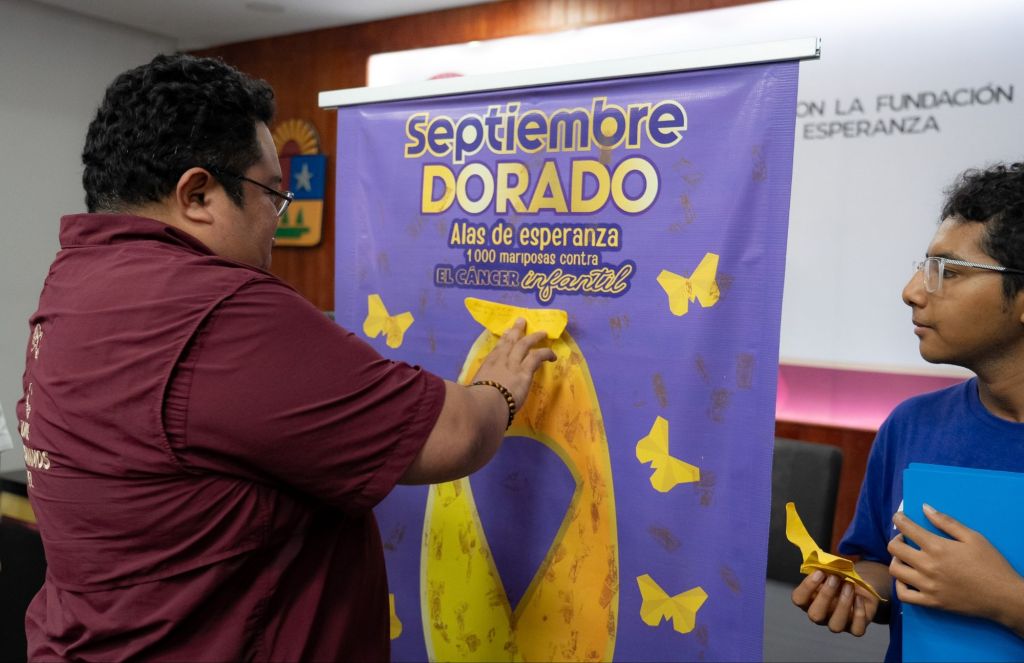 “Hoy nos sumamos a esta noble causa para acompañar a las familias que viven esta difícil situación. En Cozumel también hay niñas y niños que luchan contra el cáncer, y con esta firma queremos decirles que no están solos. Cada mariposa que coloquemos en este lazo dorado lleva un mensaje de esperanza, acompañado de una aportación voluntaria que servirá para financiar tratamientos y medicamentos”, señaló.
