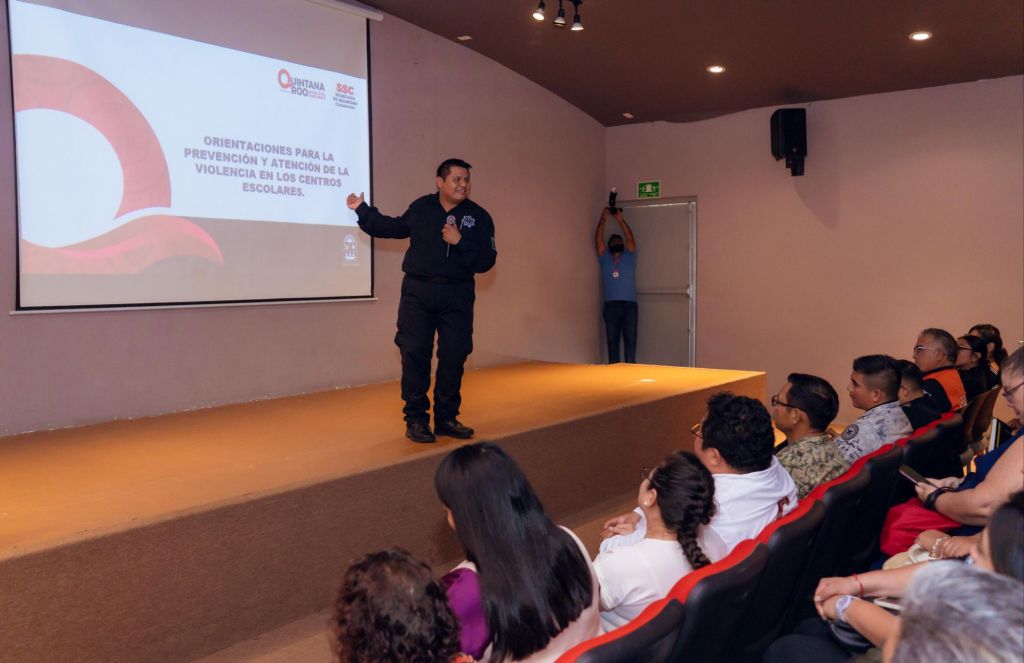 El taller fue impartido en el auditorio del Museo de la Isla por los maestros Francisco Javier Moo Tamay, Alejandro Escalante y Jovani de la Secretaría de Seguridad Ciudadana de Quintana Roo, quienes compartieron estrategias para identificar, controlar y atender contingencias, crisis y emergencias en el entorno educativo.