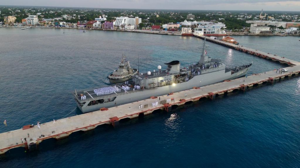 Cozumel, a 22 de noviembre de 2025.- La isla de Cozumel recibió la noche de ayer al Buque-Escuela “Brasil”, perteneciente a la Marina de Brasil, que estará atracado en la Terminal de Cruceros Punta Langosta del 21 al 24 de noviembre y abrirá sus puertas al público los días 22 y 23 de noviembre, de 14:00 a 17:30 horas.