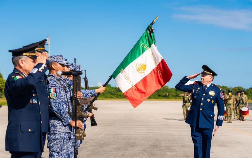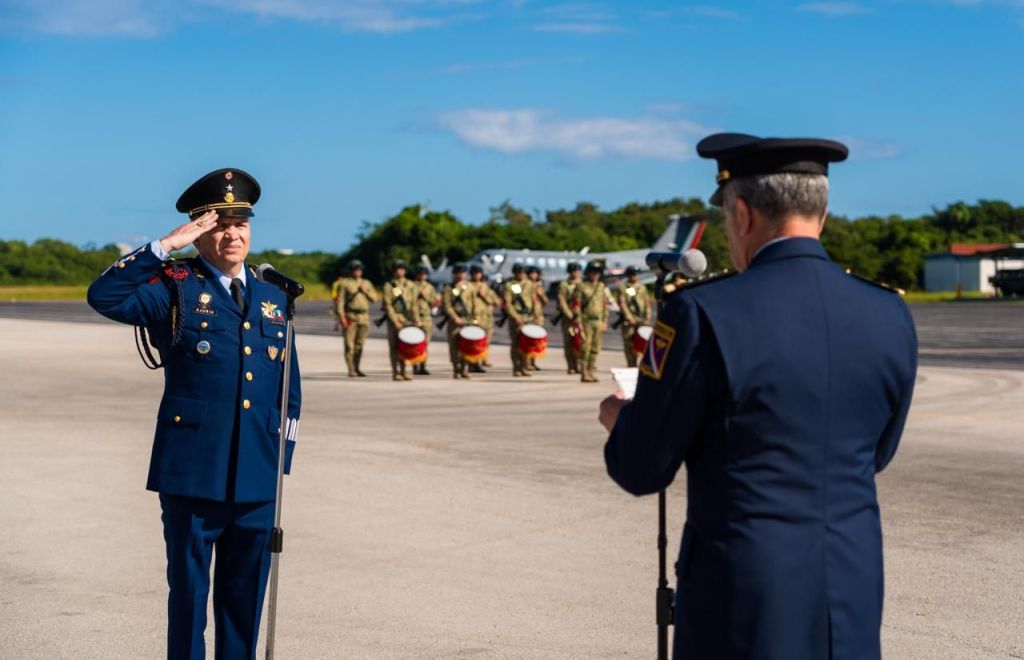 Cozumel, 01 de diciembre del 2025. – El Gobierno de Cozumel atestiguó la Ceremonia de Toma de Posesión del Mando y Protesta de Bandera del nuevo Comandante de la Base Aérea Militar No. 4, donde rindió protesta, el General de Grupo piloto aviador del Estado mayor, Román Eduardo Ajuria Benavides.