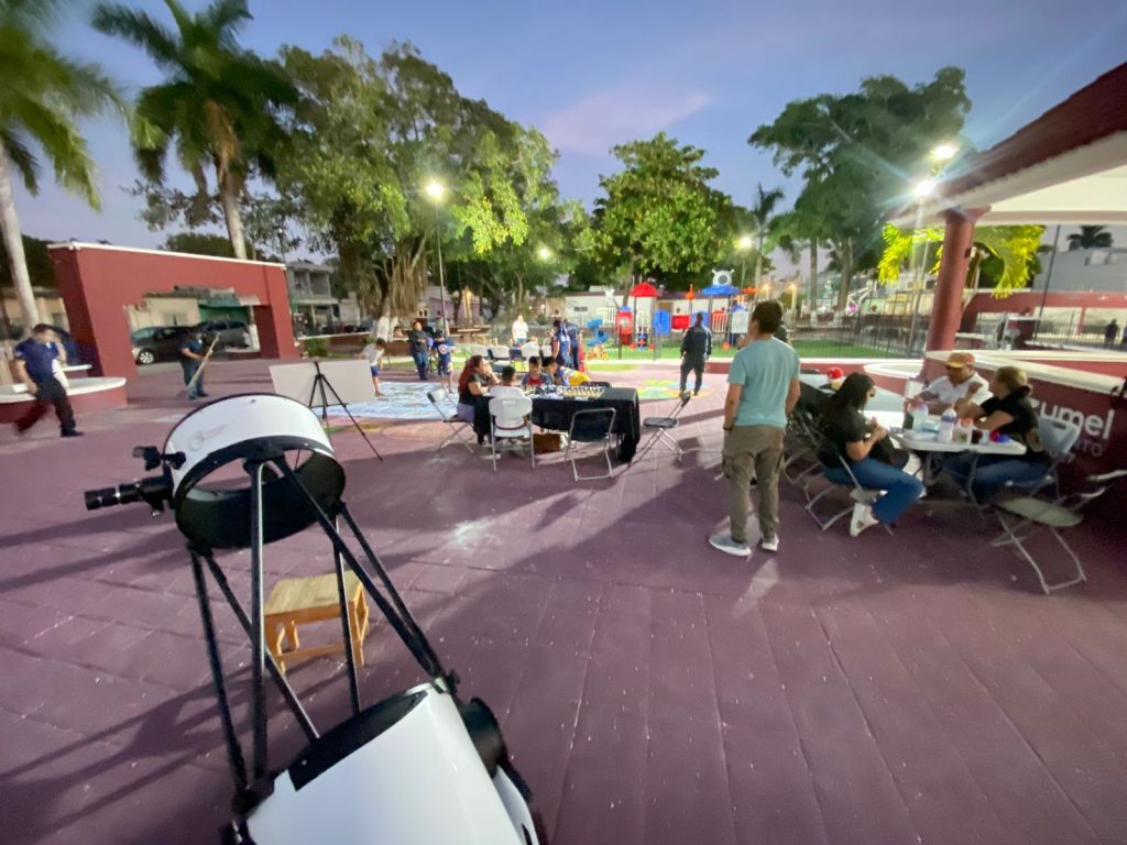 El Planetario de Cozumel participó con un telescopio para la observación de la Luna, además de instalar una mesa de actividades lúdicas enfocadas en el cuidado del medio ambiente, permitiendo que las familias combinaran el aprendizaje científico con el fortalecimiento de la cultura preventiva.