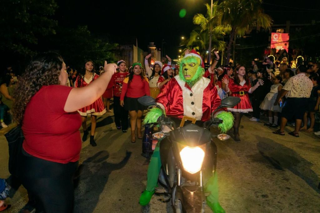 Con gran espíritu festivo, niñas, niños, familias, instituciones educativas y dependencias municipales participaron en el Desfile Navideño 2025, iluminando las calles con colores, música y tradición. Desde su salida en el monumento al Mestizaje, el contingente avanzó entre aplausos y entusiasmo, encabezado por el carro alegórico con Santa Claus, seguido por Desarrollo Social con un creativo carrito-trineo y un nutrido contingente del DIF Cozumel, que reunió a más de 150 personas acompañadas por Santa y el Grinch. También destacó la participación del Jardín de Niños Kids Park, la Casa de la Cultura Ixchel, la Secundaria General 8 Andrés Quintana Roo y la fuerza cultural de más de 230 integrantes entre banda sinfónica y batucada.