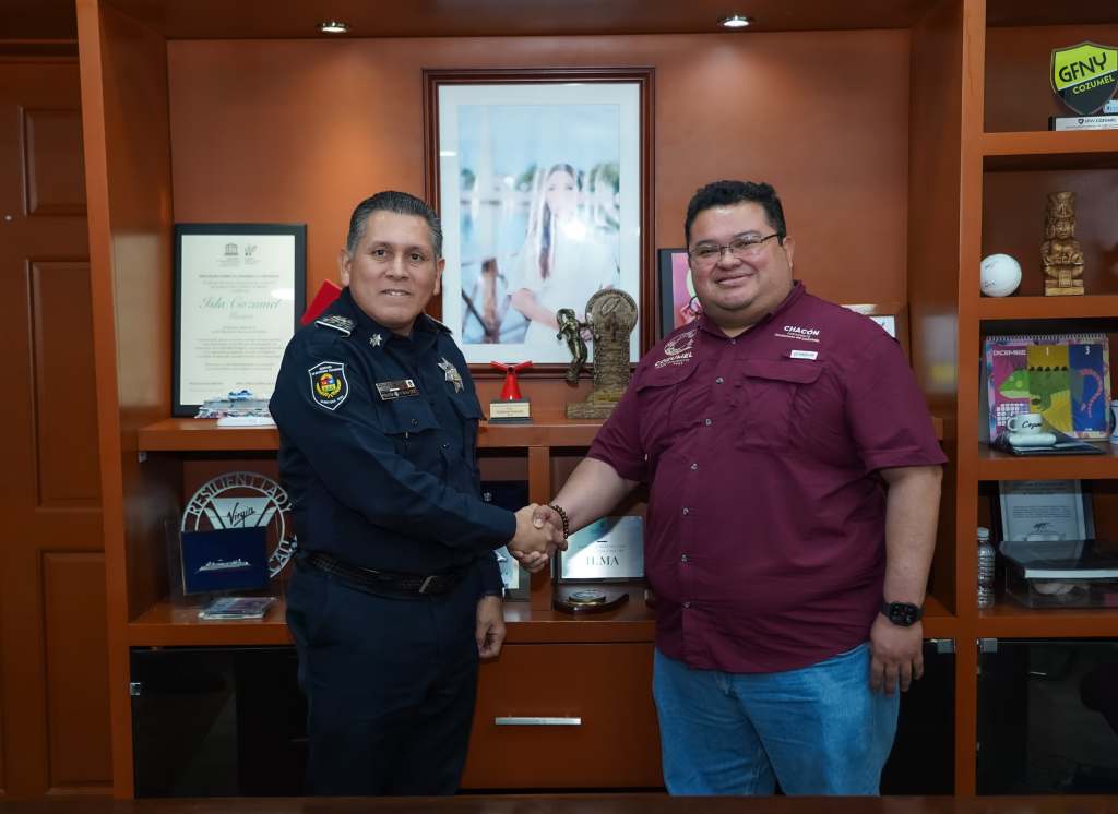 Cozumel, 9 de enero de 2026. – Para dar seguimiento y fortalecer la implementación del Modelo Homologado de Justicia Cívica en el municipio de Cozumel, el presidente municipal, José Luis Chacón Méndez, sostuvo una reunión de trabajo con el secretario de Seguridad Ciudadana de Quintana Roo, contralmirante Julio César Gómez Torres, en la que refrendaron el compromiso de coordinación permanente entre los tres órdenes de gobierno y las instituciones que participan en las tareas de seguridad, como la Guardia Nacional, la Marina, la Defensa, la Policía Estatal y la Policía Municipal, a fin de mantener a Cozumel como un destino seguro y confiable.