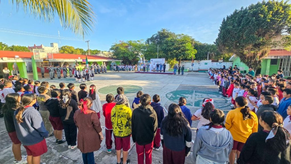 El juramento a la bandera estuvo a cargo de la alumna Ana Isabel Garza Rivera, del sexto grado, mientras que alumnos de quinto grado, grupo A, interpretaron una poesía coral titulada “Quintana Roo”, que evocó el orgullo y amor por la entidad.