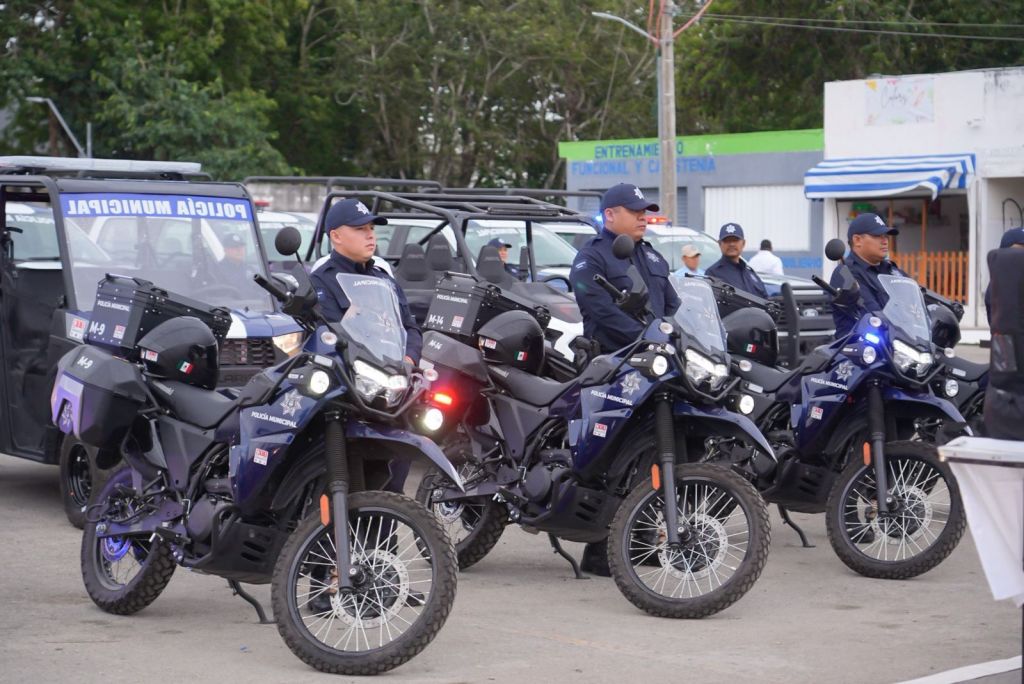 El evento se llevó a cabo en el estacionamiento de la Unidad Deportiva Bicentenario, donde el presidente municipal José Luis Chacón Méndez junto con los elementos policíacos, recibieron el nuevo equipamiento que permitirá renovar y fortalecer el parque vehicular y las capacidades operativas de la corporación policial en beneficio de las y los cozumeleños.