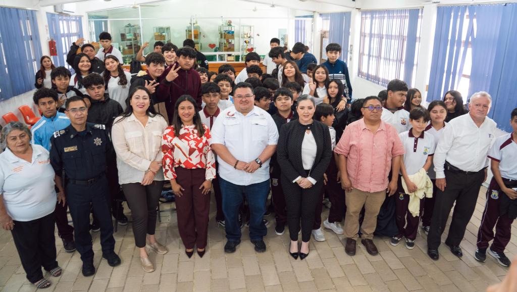 Cozumel, 09 de febrero del 2026. – «Chavos, diviértanse sanamente, anden con su familia, no hagan caso a malas amistades, cuiden sus acciones y cuiden su futuro» exhortó el presidente municipal a estudiantes de la Escuela secundaria técnica No. 24 «Octavio Paz» en el marco del inicio de las pláticas preventivas «Escalonamiento de Conductas Antisociales, Justicia Penal para Adolescentes» impartido en secundarias y preparatorias por el Poder Judicial de Quintana Roo.