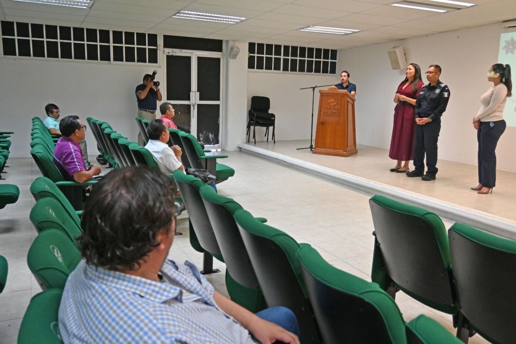 La actividad se llevó a cabo en el auditorio del CONALEP, contando con la presencia del Director de Seguridad Pública y Tránsito, Capitán Corbeta I.M.P. Fernando González Felipe; la Secretaria General del Ayuntamiento, Mtra. Margarita Barrios; el Primer Regidor, Alejandro Mattar Pérez; la Síndico Municipal, Daniela Ayala Blanco; así como el Coordinador de Prevención del Delito y Participación Ciudadana, Alejandro Moreno Peña, acompañados por el Policía Segundo Francisco Javier Noh Villanueva, la Policía Ileana Hernández Martín y la auxiliar administrativa Ingrid Achach.