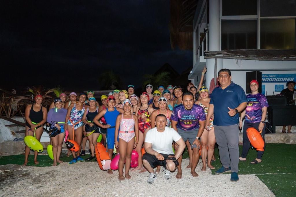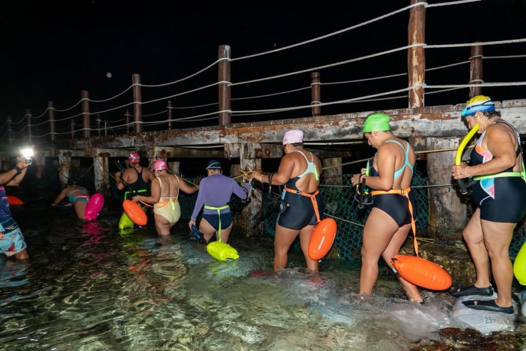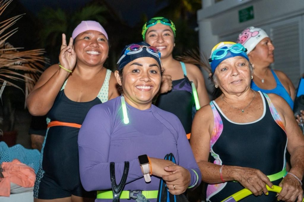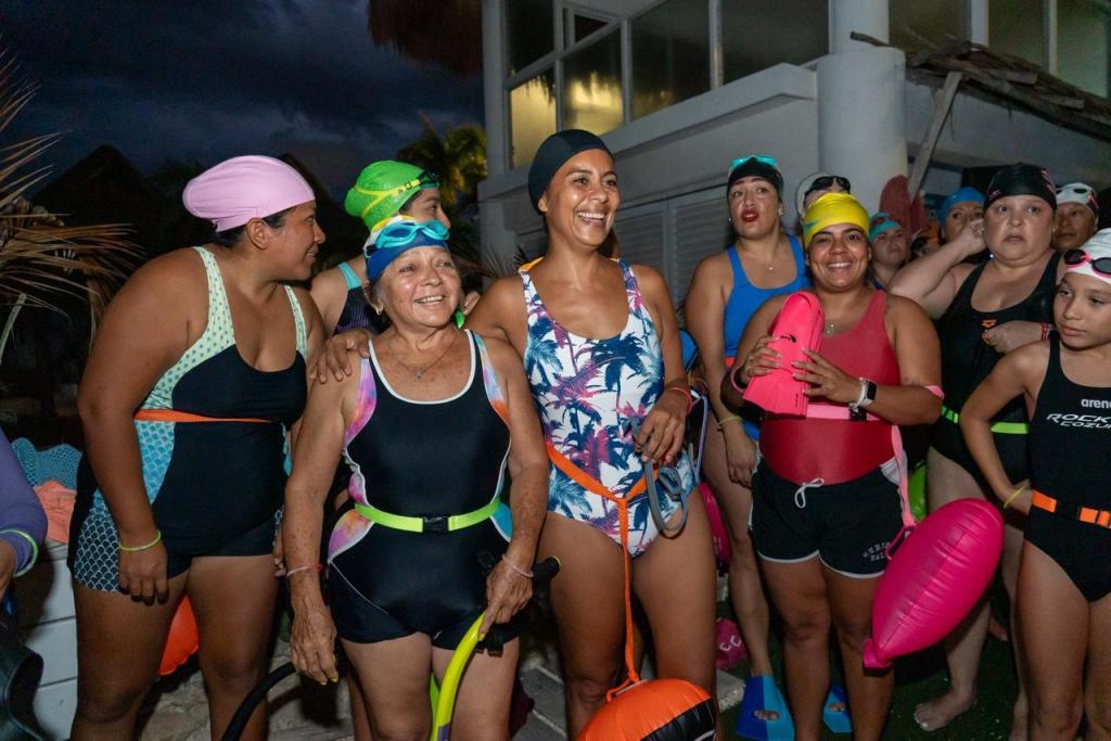 Cozumel, a 15 de marzo de 2025.- Alrededor de 100 mujeres participaron en el evento “Nado Nocturno de Aguas Abiertas”, realizado en Playa Mantarrayas como parte de las actividades conmemorativas del Día Internacional de la Mujer. En una travesía de 1.5 kilómetros bajo las estrellas, las participantes celebraron juntas la fuerza, determinación y espíritu deportivo que caracteriza a las mujeres de la isla.