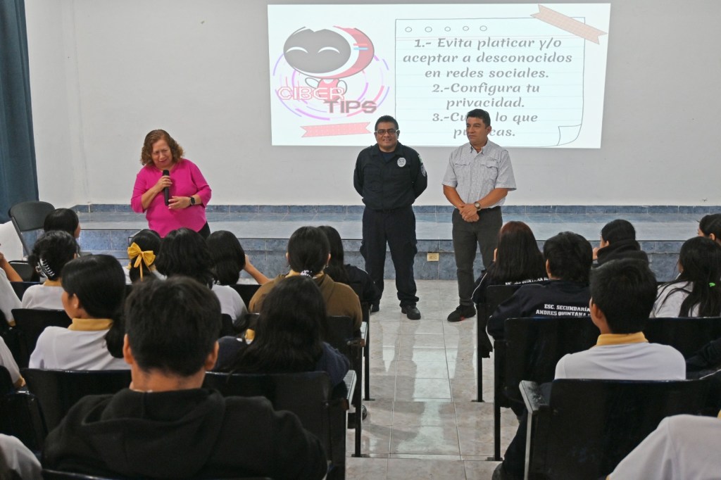 Las pláticas fueron impartidas por el personal de Prevención del Delito y Participación Ciudadana, Alejandro Moreno Peña y el Policía Tercero Francisco Javier Noh Villanueva, quienes abordaron temas de gran relevancia como el ciberbullying y sus consecuencias legales, el grooming, el sexting, el robo de identidad y el secuestro virtual.