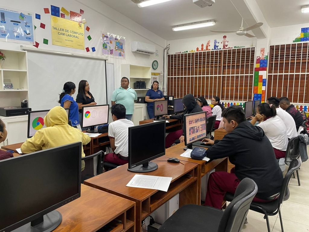Como parte de estas acciones, el COMUMU realizó una visita al CAM Laboral Cozumel con la finalidad de tener un acercamiento directo con las y los alumnos, generando un espacio de diálogo e interacción que permitió fortalecer la colaboración con la directora del plantel, María Guadalupe Damas.